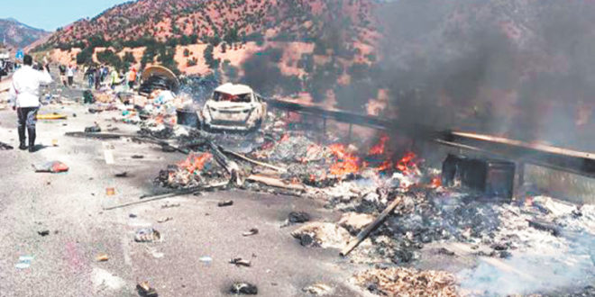 فيما نجا سائق الشاحنة الأخرى، بأعجوبة، من موت محقق، بعدما أصيب بجروح بليغة وحروق خطيرة نقل على إثرها إلى مستشفى الحسن الثاني.