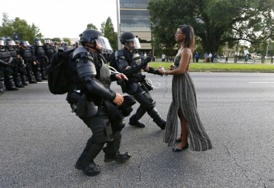 كان المصور جوناثان باتشمان في باتون روج يوم السبت الماضي لتغطية أول احتجاج في حياته المهنية عندما التقط ما أصبحت لكثيرين أفضل توضيح لتجمعات حركة “بلاك لايفز ماتر” الحاشدة التي شهدتها الولايات المتحدة خلال الأسبوع الماضي. كانت امرأة تقف في هدوء وثوبها الطويل الشيء الوحيد الذي يحركه الهواء عندما اقترب منها شرطيان بزيهما المخصص لمكافحة الشغب في منتصف الطريق لاعتقالها.