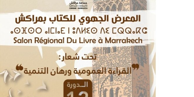 تنزيلا للتوجهات الكبرى لوزارة الشباب والثقافة والتواصل الرامية إلى دعم القراءة العمومية ونشر الكتاب تنظم المديرية الجهوية للثقافة مراكش-أسفي الدورة 12 للمعرض الجهوي للكتاب بمشاركة 30 ناشرا وطنيا ومجموعة من المؤسسات الحكومية محليا، تحت شعار “القراءة العمومية ورهان التنمية” وذلك من 26 أكتوبر إلى فاتح نونبر 2022.