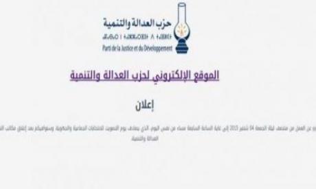 وهكذا فقد أعلن حزب العدالة والتنمية أن موقعه الإلكتروني سيتوقف عن العمل من منتصف ليلة الجمعة 04 شتنبر 2015 إلى غاية الساعة السابعة مساء من نفس اليوم، الذي يصادف يوم التصويت في الانتخابات الجماعية والجهوية.