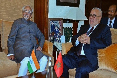 أشرف رئيس الحكومة عبد الإله ابن كيران، بمعية نائب الرئيس الهندي محمد حامد الأنصاري، خلال اجتماع مشترك، على التوقيع على عدد من الاتفاقيات بين الجانبين، ويتعلق الأمر ببرنامج للتبادل الثقافي بين المغرب والهند لسنوات 2016-2019، ومذكرة للتفاهم بين المعهد الهندي للخدمات الخارجية والأكاديمية المغربية للدراسات الدبلوماسية.