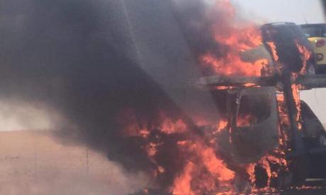 تسبب إندلاع النيران في شاحنة مخصصة لنقل وتسليم السيارات الجديدة زوال اليوم في خسائر مادية جسيمة بعد أن طال الحريق 6 سيارات من أصل عشرة كانت على متن شاحنة قادمة من الدار البيضاء ومتجهة لمراكش قصد تسليم السيارات الجديدة لأحد نقاط البيع التابعة لشركة فرنسية على مستوى مدينة بنكرير في الطريق السيار الرابط بين مراكش والدار البيضاء