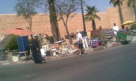 لاحديث بمراكش هذه الايام وخاصة امام وادي ايسيل بباب قشيش والسور المحادي لهذا الباب الا عن احتلال الملك العمومي من طرف الباعة الجائلين الذين اغلبهم من خارج مدينة مراكش . الذين يعرضون معروضاتهم التي غالبيتها من دول المهجر .