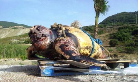 بالفيديو : دفن جثة سلحفاة ضخمة لفظها البحر بطنجة