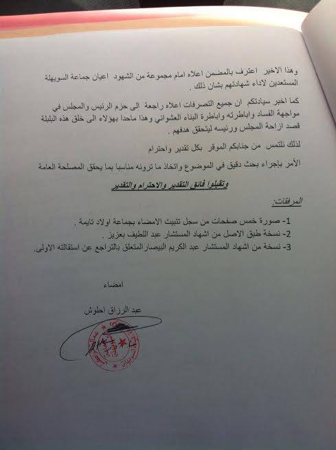 رئيس جماعة السويهلة يراسل الداخلية بخصوص إستقالة جماعية + صور