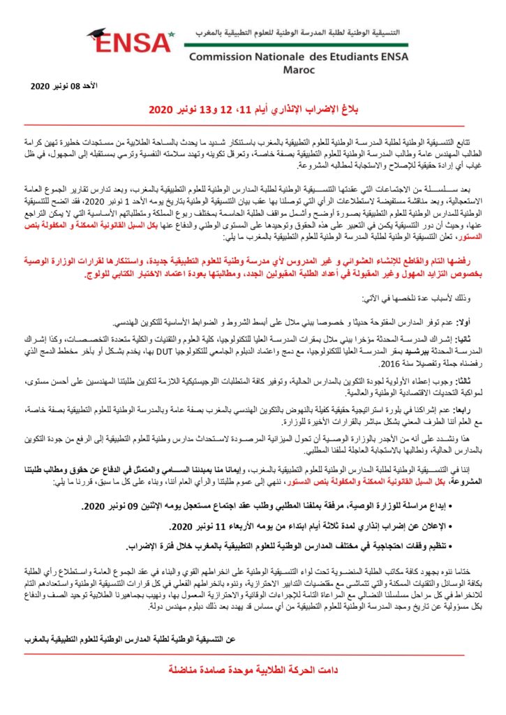 طلبة -ENSA مراكش- يخوضون إضرابا إنذاريا +بلاغ سليمة مراكش 24 11 نوفمبر، 2020 اضف تعليق المدرسة الوطنية للعلوم التطبيقية مراكش 2020-11-11 سليمة مراكش 24 شاركها فسبوك تويتر قوقل بلوس LinkedIn