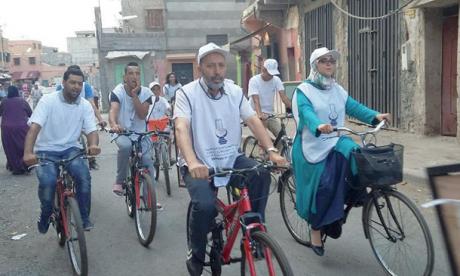 كما كان أحد الشباب يتحدث في مكبر للصوت، حيث وضعه في مقدمة دراجته الهوائية، يدعو من خلاله المواطنين إلى التصويت على حزب العدالة والتنمية و»محاربة الفساد ونهب المال العام». وقد شاركت في المسيرة، التي اختاروا الدراجات الهوائية وسيلة لها، نساء وفتيات من مختلف الأعمار.
