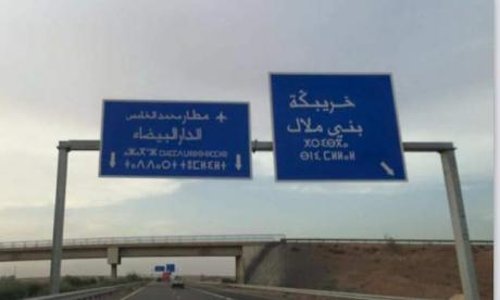 وأظهرت أولى الصور التي تداولها الفايسبوكيون عن الطريق السيار المذكور أن اللغة الأمازيغية عوضت اللغة الفرنسية في لوحات التشوير