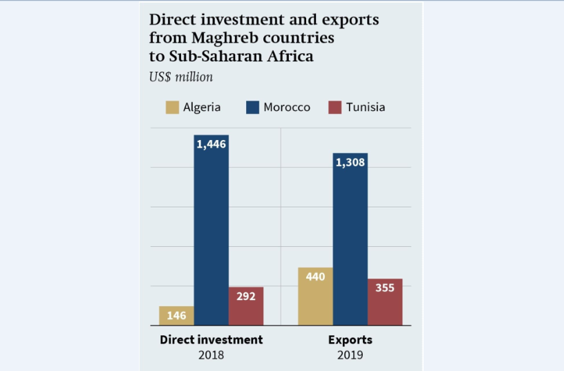 تواصل مكاتب الدراسات الإستراتيجية بألمانيا نشر بيانات ومعطيات متعلقة بالنمو الإقتصادي المغربي مقارنة مع دول شمال إفريقيا و تحذر من إرتفاع حجم الصادرات المغربية نحو دول الساحل الإفريقي برقم سنوي يتجاوز 500 في المائة من 2012 إلى 2019 .