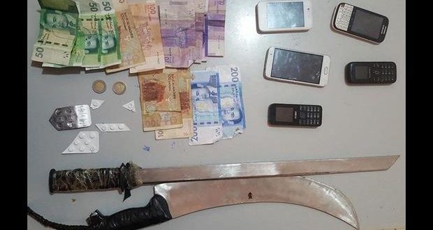 وأفاد بلاغ للمديرية العامة للأمن الوطني أنه جرى إيقاف المشتبه فيهم إثر مداهمة منزل بحي “مولاي عمر”، استغلالا لمعلومات تفيد باحتضانه لبعض ذوي السوابق القضائية، إذ تم ضبط مشتبه فيه أول متحوزا بحوالي 20 قرصا مهلوسا ومبلغ مالي متحصل من ترويجها، كما تم ضبط مشتبه فيهما اثنين وبحوزتهما سلاحين أبيضين عبارة عن سيف وزبارة، وقاصر متلبسة بممارسة الفساد مع أحد المشتبه فيهم.