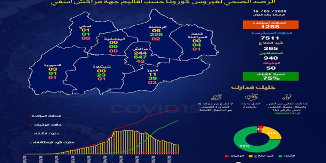 إرتفاع عدد الإصابات المؤكدة بجهة مراكش إلى 1255 حالة