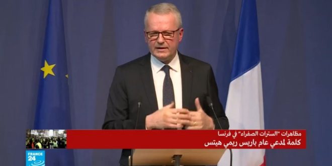 أعلن مدعي عام باريس ريمي هيتس في بيان صحافي أن ألف شخص وضعوا قيد الحبس الاحتياطي ووجهت لهم تهما بتكوين عصابة لارتكاب أعمال عنف، إثر مظاهرات “السترات الصفراء” السبت. وشدد هيتس على أن رد الشرطة القضائية كان سريعا و صارما، محذرا من أنه لن يتم التهاون في ملاحقة ومعاقبة مرتكبي أعمال العنف.