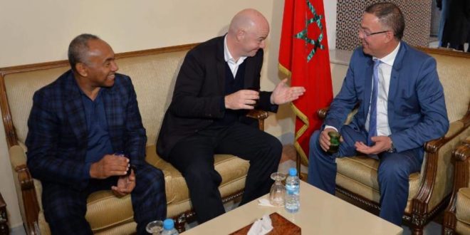 ووجد إنفانتينو، في استقباله كل من السيدين فوزي لقجع، رئيس الجامعة الملكية المغربية لكرة القدم وأحمد أحمد رئيس الإتحاد الإفريقي لكرة القدم.
