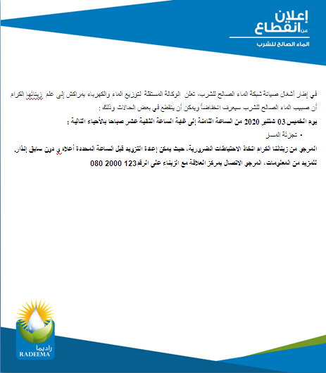 التالي إنقطاع مرتقب للتيار الكهربائي عن تجزئتين سكنيتين في هذا التاريخ