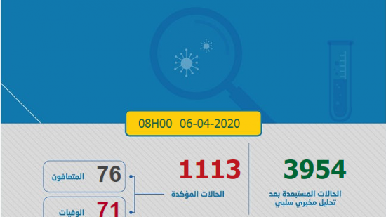 إرتفعت حالات الإصابة المؤكدة بفيروس كورونا،في المغرب إلى 1113 حالة.