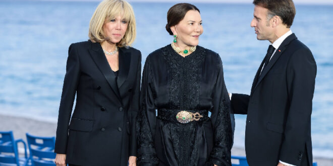حضرت صاحبة السمو الملكي الأميرة للا حسناء، التي تمثل صاحب الجلالة الملك محمد السادس في مؤتمر الأمم المتحدة الثالث للمحيطات، اليوم الأحد، بنيس، مأدبة عشاء أقامها رئيس الجمهورية الفرنسية، السيد إيمانويل ماكرون، والسيدة بريجيت ماكرون، على شرف رؤساء الدول والحكومات المشاركين في هذا المؤتمر.