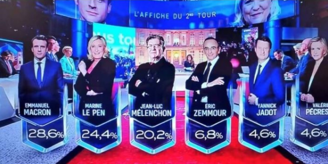 أظهرت تقديرات تصدر الرئيس المنتهية ولايته إيمانويل ماكرون نتائج الدورة الأولى من الانتخابات الرئاسية الفرنسية الأحد، بحصوله على ما بين 27,6 و29,7 بالمئة من الأصوات وتأهله إلى الدورة الثانية مع منافسته اليمينية المتطرفة مارين لوبن التي نالت 23,5 إلى 24,7 بالمئة من الأصوات.