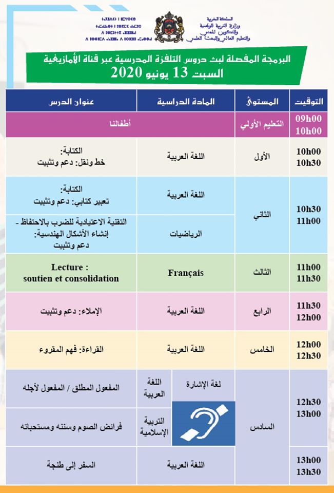 الرئيسية » 24 ساعة » البرمجة المفصلة لبث الدروس المدرسية السبت 13 يونيو