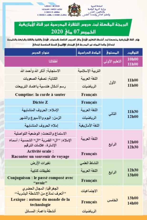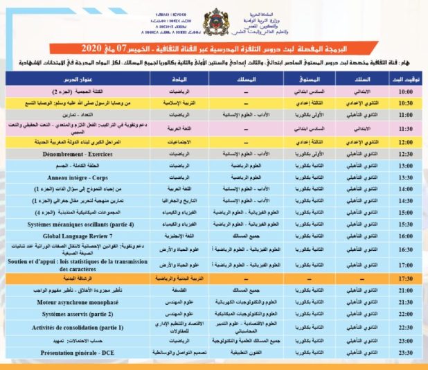 البرنامج المفصل لدروس التلفزة المدرسية -الخميس 7 ماي هيئة التحرير 7 مايو، 2020 اضف تعليق التلفزة المدرسية 2020-05-07 هيئة التحرير شاركها فسبوك تويتر قوقل بلوس LinkedIn