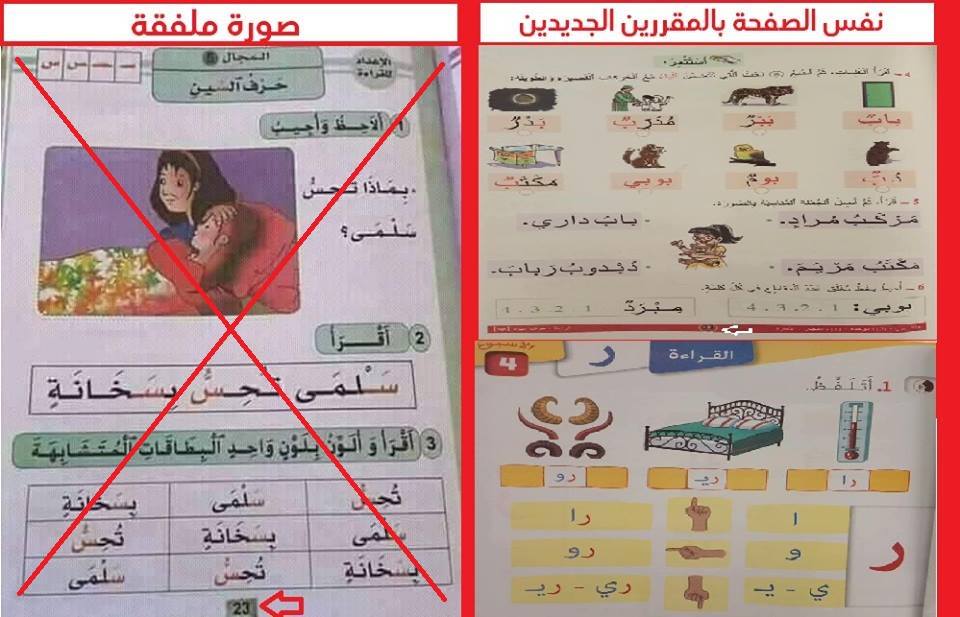 وكشفت الوزارة في منشور على صفحتها الرسمية على « فيسبوك » أرفقته بمجموعة من الصور الأصلية قبل أن تخضع للتعديل بتقنية الفوطوشوب أنه ” يتم حاليا بمواقع التواصل الاجتماعي تداول عدد من الصور والتعاليق بشأن الكتب المدرسية الجديدة لسلك التعليم الابتدائي الصادرة هذه السنة” .