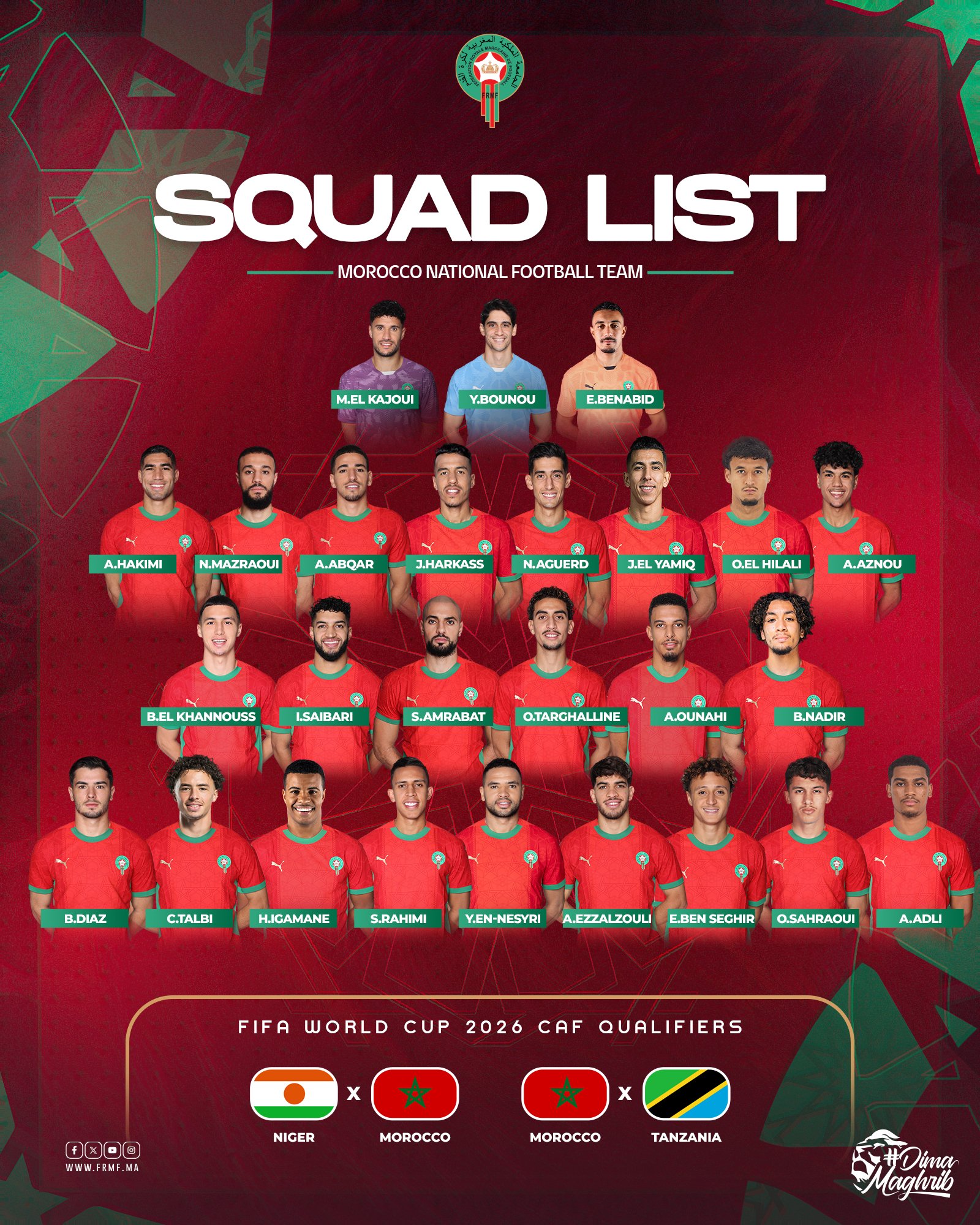 التصفيات الإفريقية المؤهلة لكأس العالم 2026.. وليد الركراكي يكشف عن لائحة المنتخب الوطني لمواجهتي النيجر وتنزانيا