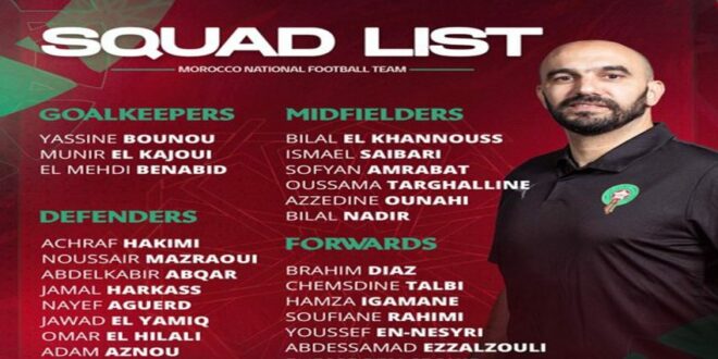 وبالنسبة لحكيم زياش، يرى الركراكي أنه “لاعب أعطى الكثير للمنتخب الوطني. إنه لاعب موهوب. نأمل أن نراه في قمة مستواه”.