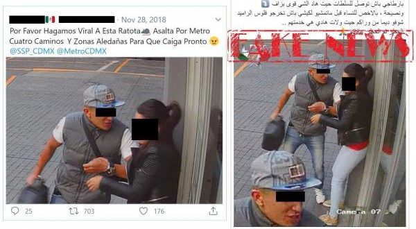 وذكر بلاغ للمديرية العامة للأمن الوطني أن الخلية المركزية للرصد واليقظة المعلوماتية لمكافحة الأخبار الزائفة، كانت قد رصدت صورة منشورة على صفحات مواقع التواصل الاجتماعي، يظهر فيها شخص يعرض فتاة للسرقة بالعنف بالشارع العام، مشفوعة بتعليق يدعي أن النازلة وقعت بالمغرب وأن شبكة إجرامية تستهدف المواطنات وتعرضهن للسرقة عند سحبهن للمبالغ المالية من الشبابيك الأوتوماتيكية البنكية.