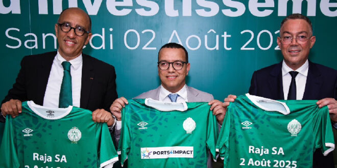 وتجسد هذه الاتفاقية، التي وقعها كل من رئيس نادي الرجاء الرياضي جواد الزيات، ورئيس جمعية “Ports4Impact”، إدريس أكوجيم، الانطلاقة الفعلية لشركة الرجاء برأسمال قدره 250 مليون درهم، حيث تساهم جمعية Ports4Impact بنسبة 60 في المائة عبر استثمار بقيمة 150 مليون درهم، فيما تسهم جمعية نادي الرجاء الرياضي بنسبة 40 في المائة من خلال مساهمة بقيمة 100 مليون درهم تمثل الفرق الرياضية والعلامة التجارية.