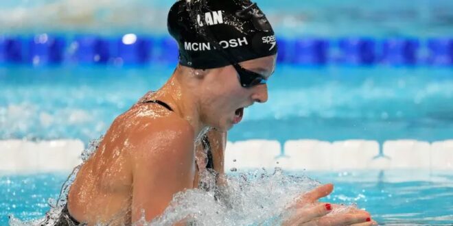 تمكنت السباحة الكندية سامر ماكنتوش من تحطيم الرقم القياسي العالمي في سباق 400 متر حرة، مسجلة توقيتا قدره 3:54.18 دقائق، خلال التصفيات الكندية لبطولة العالم للسباحة، لتفرض نفسها كمرشحة قوية لنيل الذهب في البطولة التي ستقام في سنغافورة هذا العام.