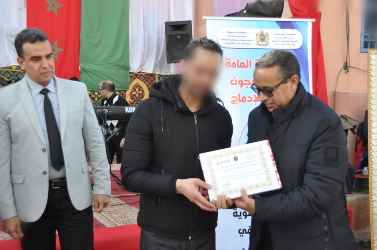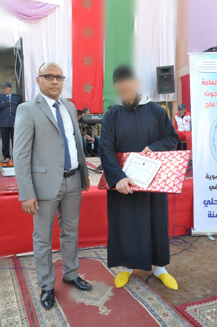 ونوه السيد المدير خلال الحفل  بفعاليات المجتمع المدني بالإقليم خصوصا الجمعيات الشريكة التي انخرطت في تنزيل سياسة إعادة الادماج خلال هاذه السنة