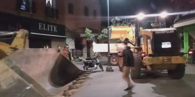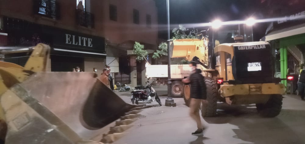 باشرت السلطات المحلية بملحقة جامع الفنا ليلة أمس الأحد عملية ميدانية لتحرير جنبات و محيط شارع “البرانس” من الزوائد و العيوب العشوائية التي كانت تشكل عرقلة للسير و الجولان في إتجاه ساحة جامع الفنا .