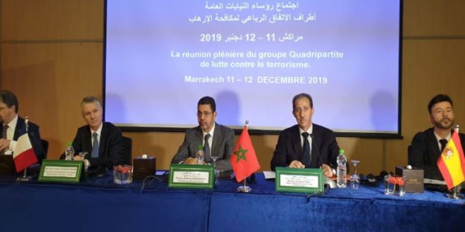 وفي هذا الصدد شهد التعاون القضائي في مجال مكافحة الإرهاب بين الدول الأربع المجتمعة اليوم، تطوراً ملفتاً للانتباه. ولاسيما من خلال توظيف قضاة الاتصال لتسهيل التواصل بين النيابات العامة المتخصصة بالدول المعنية. وبالأخص منذ إنشاء اللجنة الرباعية، التي تضم كلاًّ من قطب الإرهاب بالمحكمة الكبرى بباريس، والنيابة العامة لدى المحكمة الوطنية الإسبانية، والنيابة الفيدرالية ببلجيكا، بالإضافة إلى النيابة العامة لدى محكمة الاستئناف بالرباط. وهو ما مكن الدول الأربع من التوفر على منصة ملائمة لتبادل المعلومات عن التشريعات والاجتهادات القضائية. وكذلك لتدارس القضايا المشتركة وتتبع التهديدات الإرهابية، والتنسيق لمواجهتها بالآليات القضائية المتاحة في التشريعات. وفضلاً عن ذلك فإن التواصل المباشر بين أعضاء النيابات الأربع المعنية، يساعد على حسن تطبيق اتفاقيات التعاون القضائي، وسرعة إنجاز وتنفيذ طلبات التعاون المتعلقة بقضايا الإرهاب.