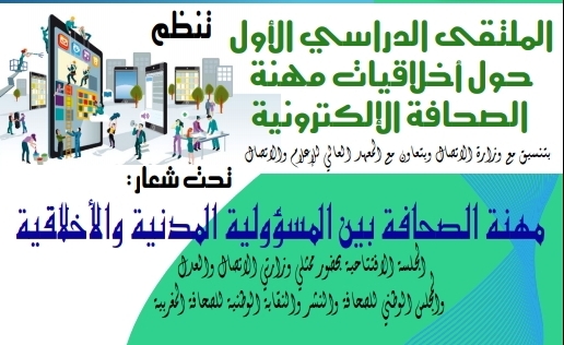 تحت شعار : << مهنة الصحافة بين المسؤولية المدنية والاخلاقية>> تنظمالكونفدرالية المغربية لناشري الصحف والإعلام الإلكتروني الملتقى الدراسي الأول حول أخلاقيات مهنة الصحافة الإلكترونية، وذلك يوم الجمعة 01 فبراير 2019, بالمعهد العالي للإعلام والإتصال بالرباط ابتداء من الساعة الثالثة بعد الزوال.
