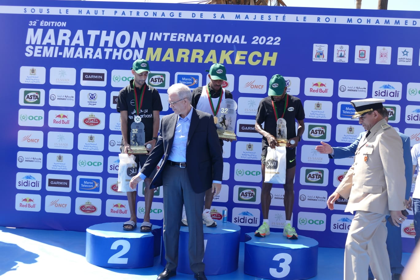 فوز العدائين بونسا ديدا من ايثوبيا و فاطمة الزهراء كردادي من المغرب يفوزان بلقب ماراطون مراكش الدولي و لهذا فإن الدورة 32 لماراطون مراكش الدولي الذي أقيم يوم الأحد 15ماي 2022 كان ناجحا بكل المعايير وكما كان مبرمجا في سباق الماراطون (42كلم 195م) على الساعة السادسة صباحاً إلى أن ينطلق سباق نصف الماراطون.