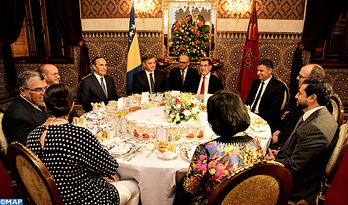 أقام الملك محمد السادس، مساء الاثنين 17 شتنبر 2018، بالرباط، مأدبة عشاء على شرف رئيس مجلس الوزراء بجمهورية البوسنة والهرسك دينيس زفيزديتش، الذي يقوم بزيارة رسمية للمغرب، ترأسها رئيس الحكومة سعد الدين العثماني.