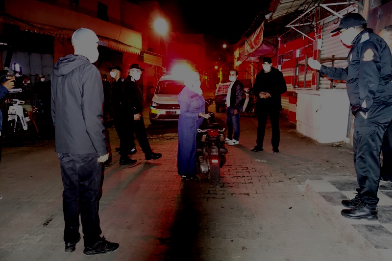 الدروب والأزقة التي تشكل جغرافية المدينة العتيقة بمدينة مراكش ألهمت المسؤولين الأمنيين بالمنطقة الأمنية الأولى لوضع منهجية مناسبة لتقييد حركات التنقل , وذلك عبر إحداث وحدات أمنية ثابثة وأخرى متنقلة تغطي كافة المنافذ الطرقية المؤدية للمدينة العتيقة إلى جانب وحدات إضافية أخرى بالزي المدني تتولى مهمة إستشعار الهدوء الليلي بكافة الأزقة والدروب الواقعة بتراب مقاطعة المدينة .علاوة على التنسيق المباشر مع قاعة القيادة والتنسيق لضمان السرعة والفعالية في التجاوب مع مكالمات المواطنين والتفاعل الإيجابي مع تبليغاتهم بخصوص مخالفة قانون الطوارئ الصحية .