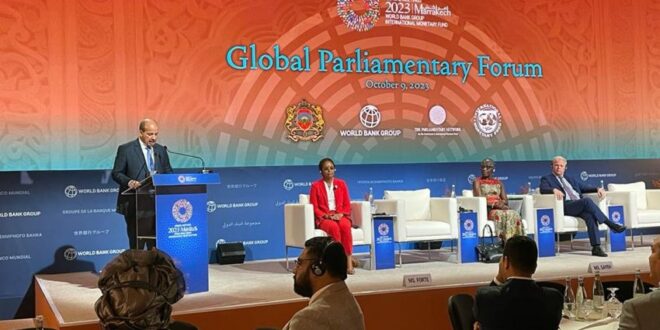 وحث السيد ميارة، في كلمة خلال الجلسة الافتتاحية للمنتدى البرلماني العالمي، الذي تنظمه، في إطار الاجتماعات السنوية للبنك الدولي وصندوق النقد الدولي، الشبكة البرلمانية للبنك الدولي وصندوق النقد الدولي، بشراكة مع مجلسي البرلمان المغربي، على ضرورة التفكير في بلورة تصور عملي لبناء “أجندة برلمانية عالمية من أجل تحول تنموي منصف ودامج”، تمكن من وضع دليل للممارسات الاقتصادية البرلمانية الفضلى.