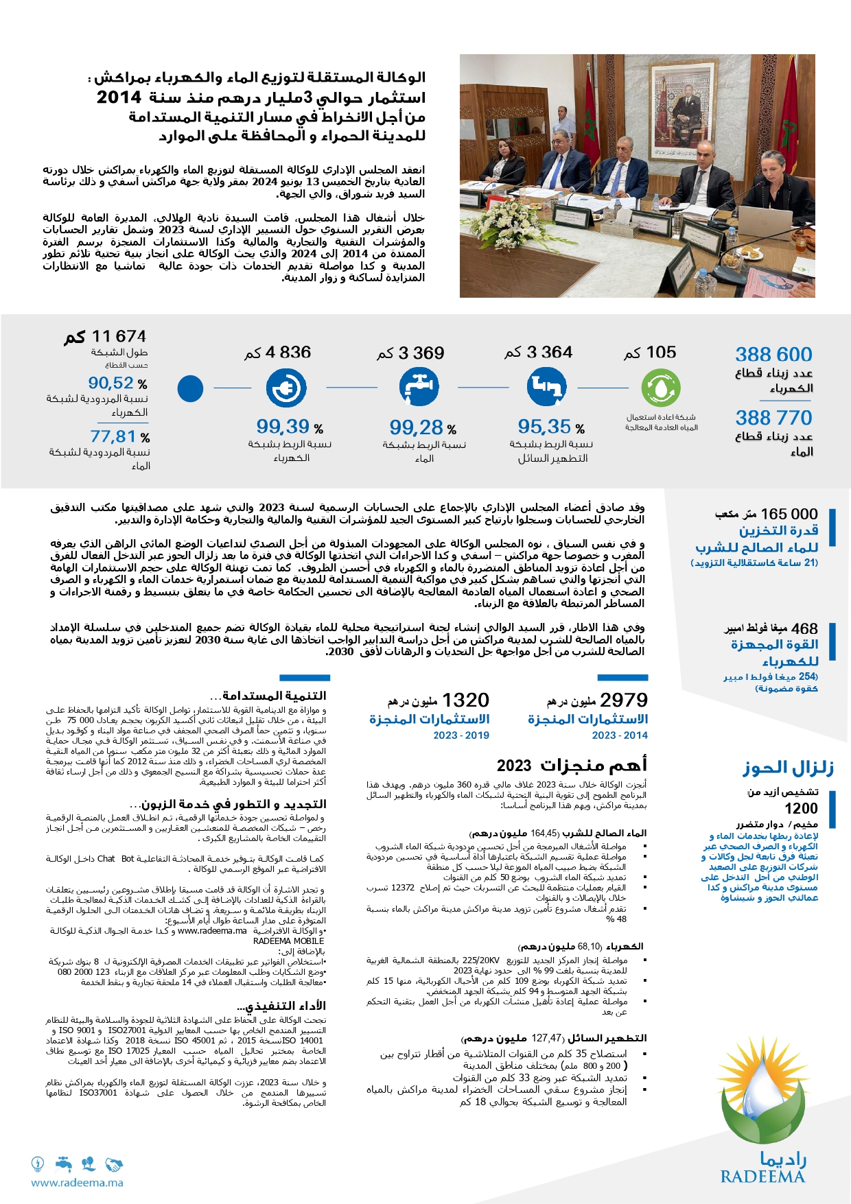 الوكالة المستقلة لتوزيع الماء والكهرباء بمراكش : استثمار حوالي 3 مليار درهم منذ سنة 2014 من اجل الانخراط في مسار التنمية المستدامة للمدينة الحمراء والمحافظة على الموارد