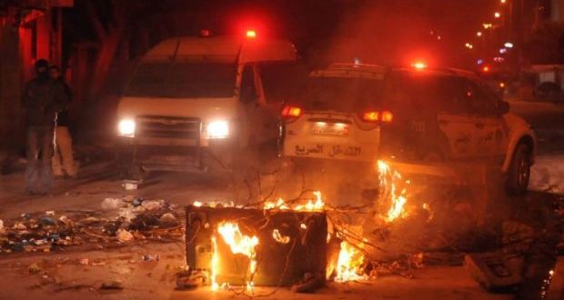 وقام العشرات من المتظاهرين في مدينة القصرين، بإحراق العجلات المطاطية وغلق الشوارع الرئيسية، ما اضطر الوحدات الأمنية التونسية إلى استعمال القوة لتفريقهم.