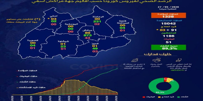 وأصبحت أقاليم قلعة السراغنة والرحامنة والصويرة خالية من الوباء بعد تماثل حالات الإصابة للشفاء، فيما ظل إقليم اليوسفية خاليا من أية إصابة منذ ظهور الوباء بالجهة.