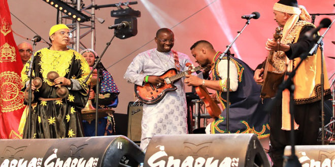 وهكذا، امتزجت إيقاعات “الغمبري والقراقب” لمجموعة المعلم الكناوي عبد السلام عليكان، مع القيثارة الإلكترونية للفنان المالي فيو فاركا توري، كما انصهرت مع آلة الرباب للفنان عزيز أزوس، مجلية بذلك قابلية فن كناوة العريق على استقبال كل الأنماط الموسيقية والتعايش معها في جو وجداني بهيج.