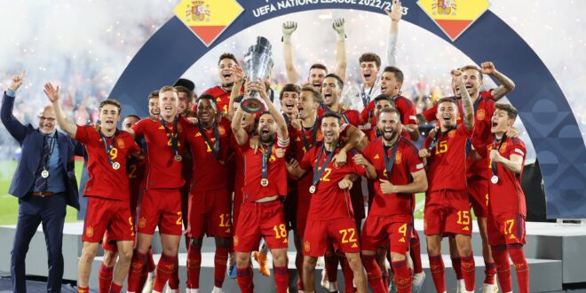 توجت إسبانيا بطلة للنسخة الثالثة لمسابقة دوري الأمم الأوروبية في كرة القدم بفوزها على كرواتيا بالضربات الترجيحية 5-4 ،بعد تعادلهما سلبا في الوقتين الأصلي والإضافي في المباراة النهائية ،اليوم الأحد، في روتردام.