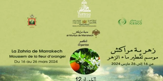 افتتحت اليوم السبت بالمدينة الحمراء، فعاليات الدورة الـ12 لموسم تقطير ماء الزهر “زهرية مراكش”، المقامة تحت الرعاية السامية لصاحب الجلالة الملك محمد السادس، في إطار احتفالية “مراكش عاصمة الثقافة في العالم الإسلامي” لسنة 2024.