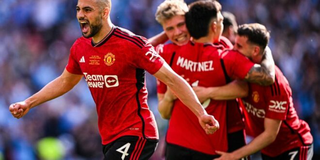 تمكن مانشستر يونايتد، معززا بالدولي المغربي سفيان أمرابط، من الفوز بكأس الاتحاد الإنجليزي على حساب مانشستر سيتي (2-1)، اليوم السبت على ملعب ويمبلي.