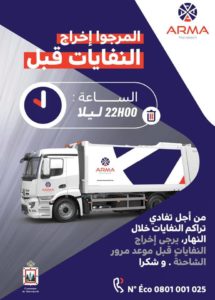” أرما” تواصل حملاتها التحسيسية لتفادي تراكم النفايات خلال النهار و تدعو لإخراج النفايات قبل 10ليلا