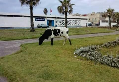 تداول مجموعة من الفايسبوكيين، صورة لبقرة ترعى بمساحة خضراء قرب مقر بلدية الصويرة، مرفوقة بمجموعة من التعليقات والأسئلة الساخرة، حول من يتحمل المسؤولية في وجود حيونات تتجول داخل مدينة سياحية، في مشهد أقرب إلى مشاهد البقر يتجول بالهند التي يعبد أهلها البقر، وترعى بالمساحات الخضراء التي تفتقدها ساكنة المدينة. فيما علق أحدهم ساخرا: ” كنسمعوا حمار البلدية ولكن دابا شفنا بقرة البلدية”.