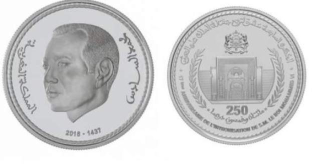 أعلن بنك المغرب عن إصدار قطعة نقدية تذكارية فضية من فئة 250 درهما، بمناسبة الذكرى التاسعة عشرة لتربع صاحب الجلالة الملك محمد السادس على عرش أسلافه الميامين.