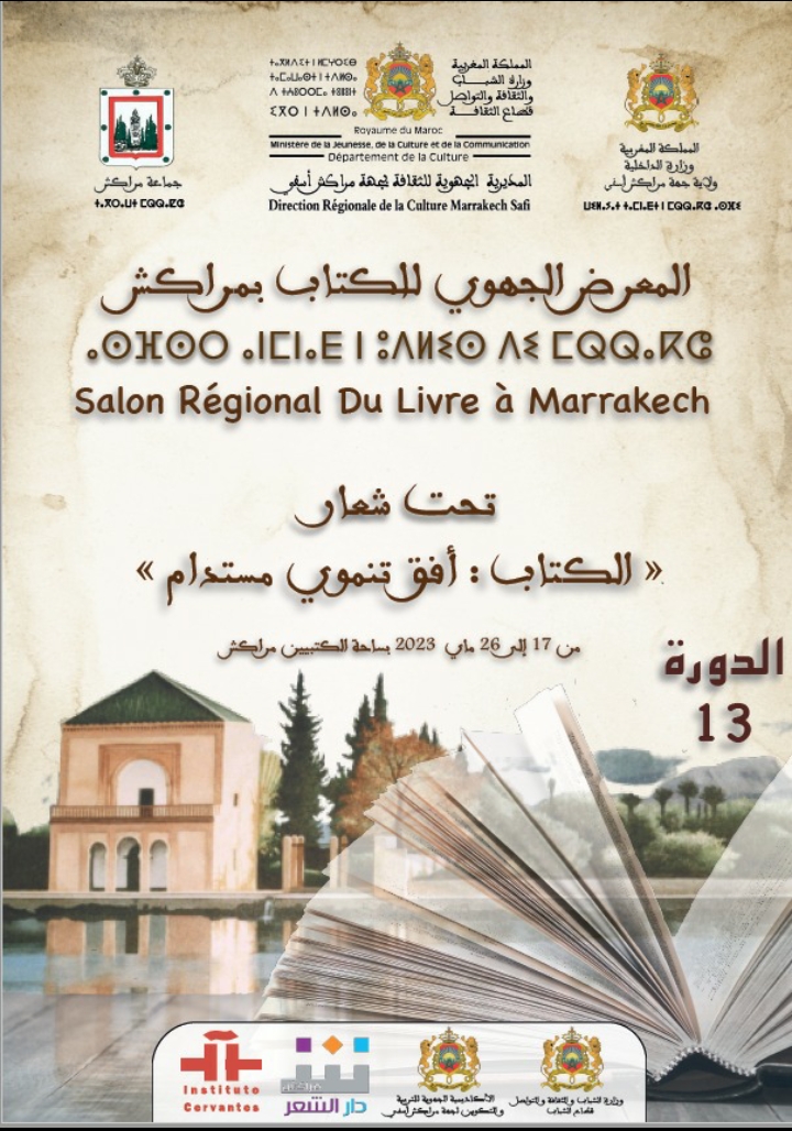 تنظم المديرية الجهوية للثقافة مراكش ـ أسفي فعاليات الدورة 13 للمعرض الجهوي للكتاب تحت شعار “الكتاب: أفق تنموي مستدام” وذلك في الفترة الممتدة ما بين 17 و26 ماي 2023 بساحة الكتبيين بمراكش.