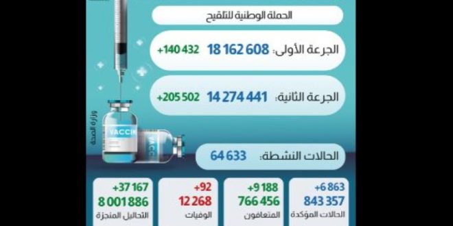 كوفيد-19: 6863 إصابة جديدة وأزيد من 14 مليون و274 ألف ملقح