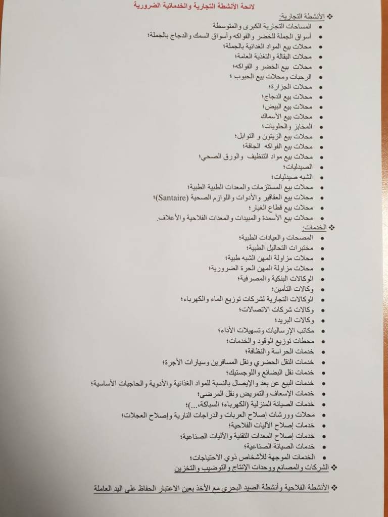 لائحة مفصلة للمحلات التجارية والخدمات غير المعنية بقرار الإغلاق هيئة التحرير 20 مارس، 2020 اضف تعليق الأنشطة فيروس كورونا 2020-03-20 هيئة التحرير شاركها فسبوك تويتر قوقل بلوس LinkedIn